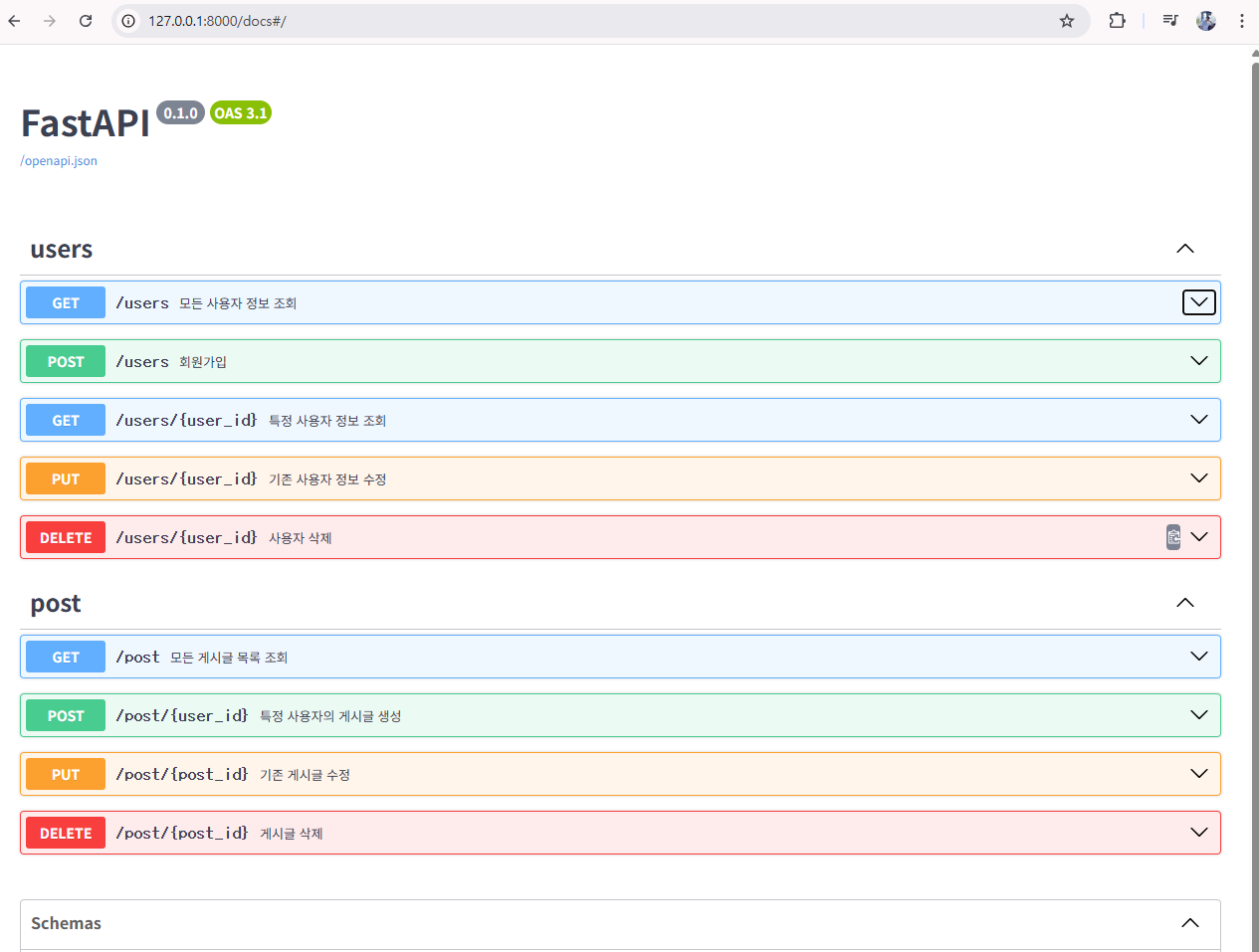 API 서버 실행 후 http://127.0.0.1:8000/docs 접속