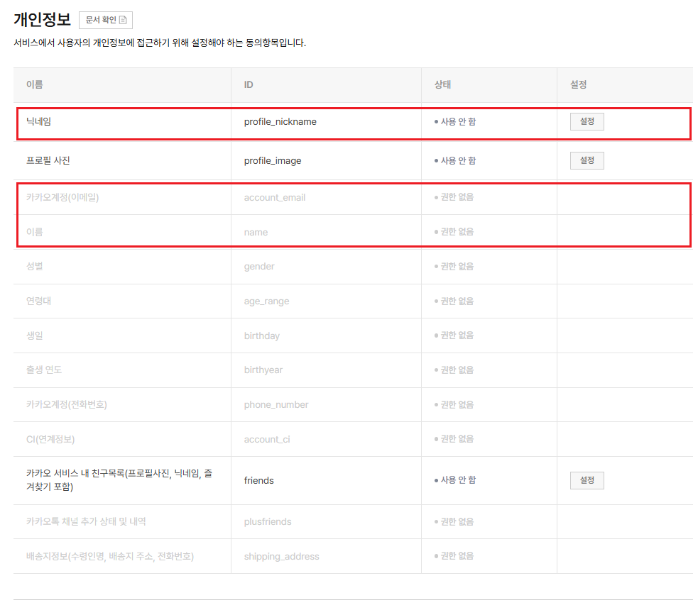 - 이름 or 닉네임과 계정 이메일이 필요하다. 하지만 카카오계정과, 이름은 설정할수 없게 되어있다.