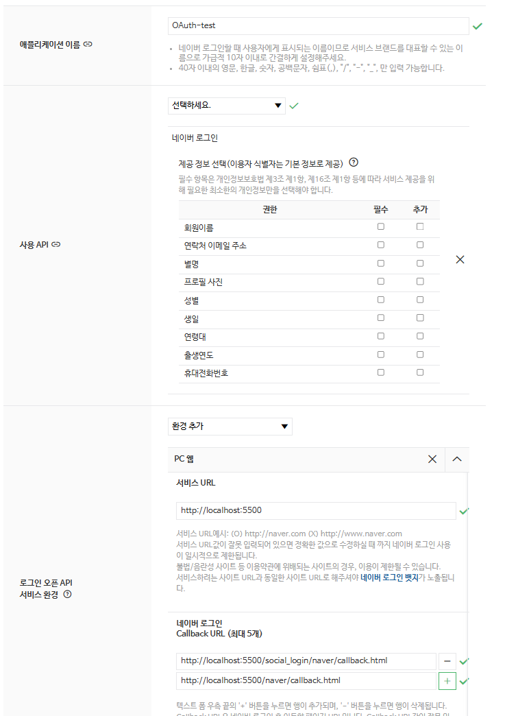- 리다이렉트 URI에 CallbackURI을 적어준다.
