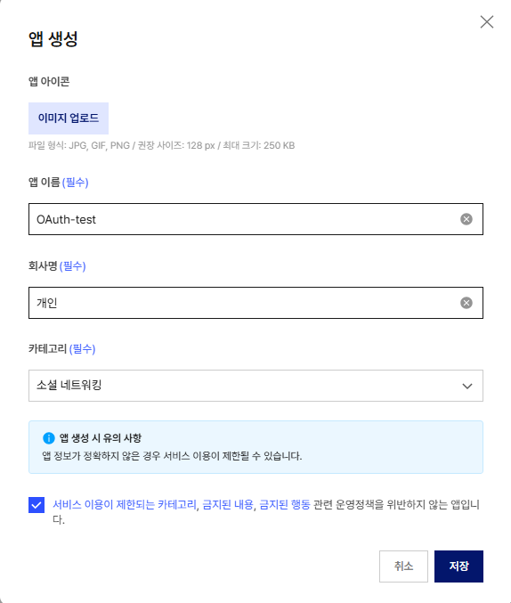 앱 - 생성을 눌러 앱을 생성한다