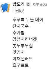 이전에 학식 봇을 만든적이 있다. 이유는 사실 별 생각 없이 학식을 먹을지, 메뉴를 보고 별로다 생각이 들면 외부 음식점을 갈지 하곤 했는데 매일 학식 확인하는 페이지를 들어가 확인하는 것도 귀찮았다.
